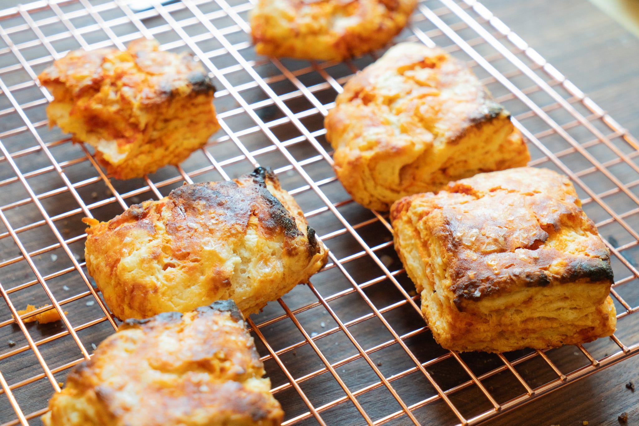 Gochujang has a long history and the stewards of the practice maybe didn’t intend for someone to add it to biscuits. I decided to pursue this recipe with the inclusion of gochujang because it made the biscuits savory, a little spicy and kind of addicting. I hope my recipe does right by the tradition.