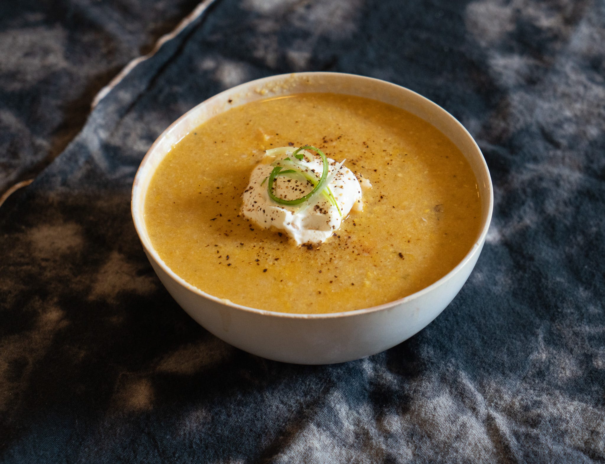I’ve learned to appreciate the fact that almost nothing we create is ever truly unique, that there’s rarely a “first” of anything. It sounds like a no-brainer in theory, but cooking has helped me learn this more practically. There is no “first” cookbook, no “first” recipe, no “first” or true definition of corn chowder. To me, creating a corn-based soup with some of my favorite and newfound ingredients was a way to explore what certain things can become in different contexts and how my definition of those things might change.