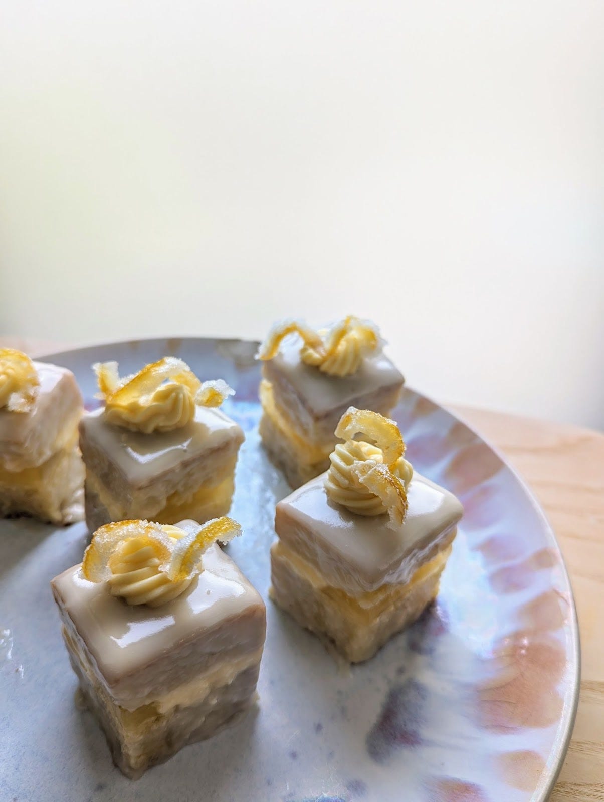 It amazes me how memories can be buried for so long, and in this case, brought back to the surface because of a return to something that feels so instinctual, like ambitious cake decorating. In planning my petit fours I felt an excited nervousness bubble up. Like standing at the edge of an impossibly tall platform. There’s a resistance to the fall but an even stronger inclination to jump headfirst. If the cakes turn out unintentionally topsy turvy I’m harnessed in and safe to try again.